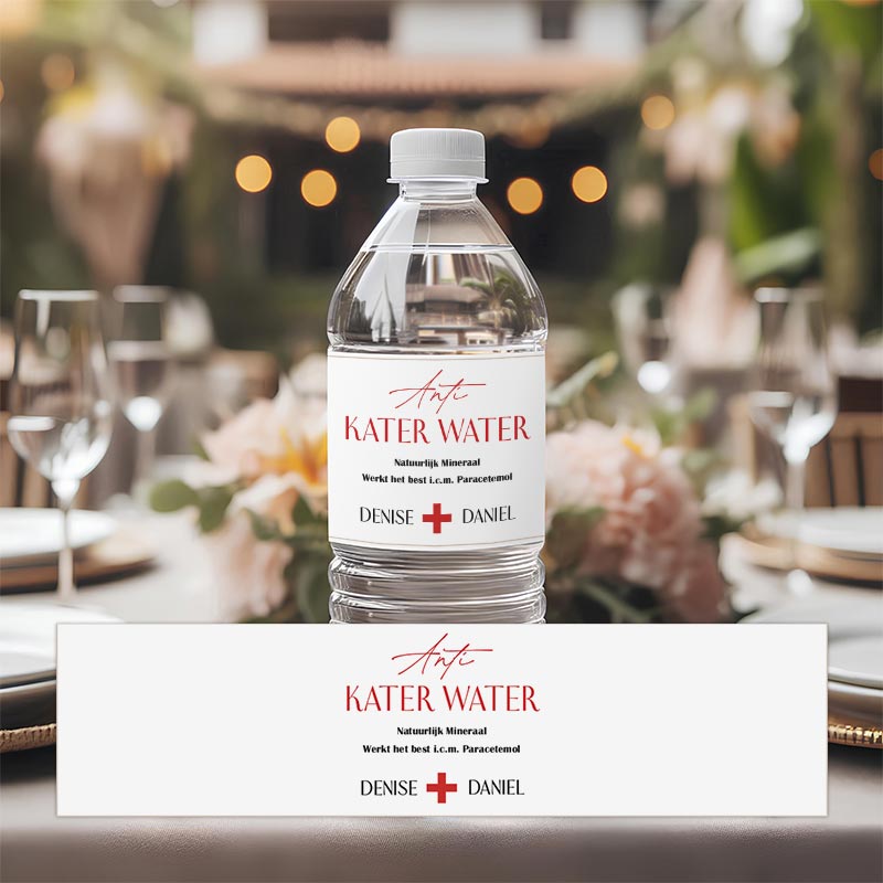 Sluit jullie feest af met een knipoog dankzij deze hilarische Anti Kater Water Etiketten! Voeg een vrolijk en stylish detail toe aan jullie huwelijksdag of ander evenement. Met de boodschap dat dit “natuurlijk mineraalwater” het best werkt in combinatie met paracetamol, zullen je gasten de volgende dag zonder bijwerkingen opstaan. Een speelse touch voor een onvergetelijke ervaring!