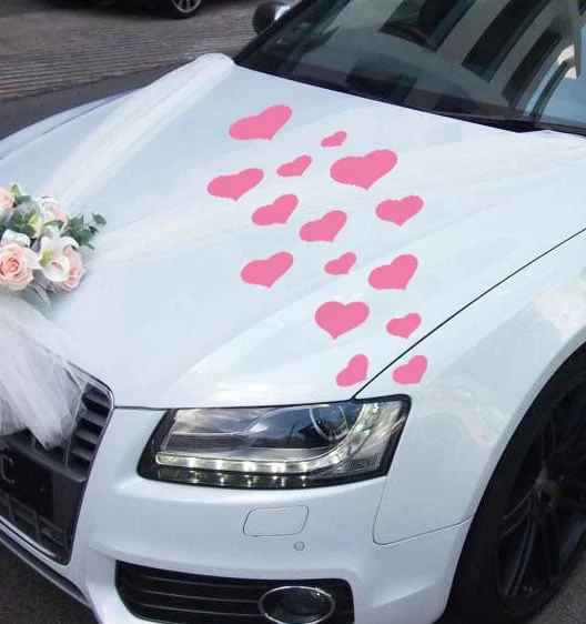Deze geweldige Autostickers Bruiloft Harten kunt u op alle gladde oppervlakten aanbrengen, auto’s, ramen, deuren, muren en meer…