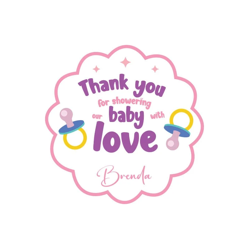 Verspreid liefde en geluk met onze schattige Babyshower Stickers voor Girls! 🎀 Deze leuke stickers in wolk design, met de tekst “thank you for showering our baby with love” in paars met roze accenten, samen met de naam van de baby, zijn een hartverwarmende toevoeging aan je bedankjes. Gemaakt van duurzaam vinyl, 4 cm groot en met een minimum van 40 stuks, zijn ze perfect om de vreugde te verspreiden. Bestellingen worden binnen 1-3 werkdagen verzonden! 🌟