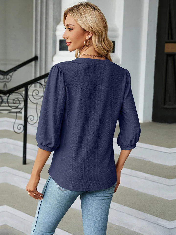 Dames Blouse met Notch Hals en Driekwart Mouwen