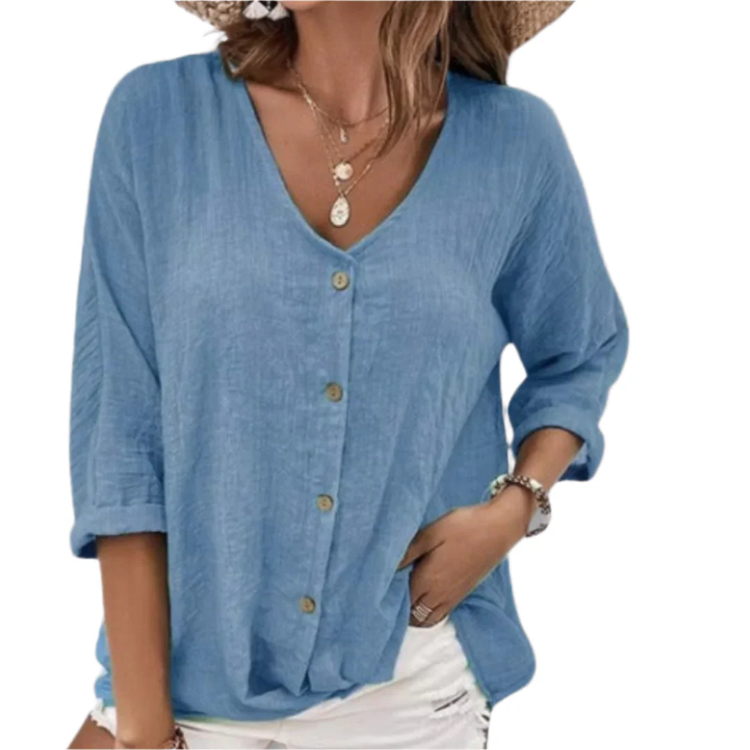 De Dames Top Casual V-hals is de perfecte combinatie van stijl en comfort voor elke gelegenheid. Gemaakt van een licht en ademend materiaal, zorgt deze top ervoor dat je je de hele dag fris en elegant voelt.