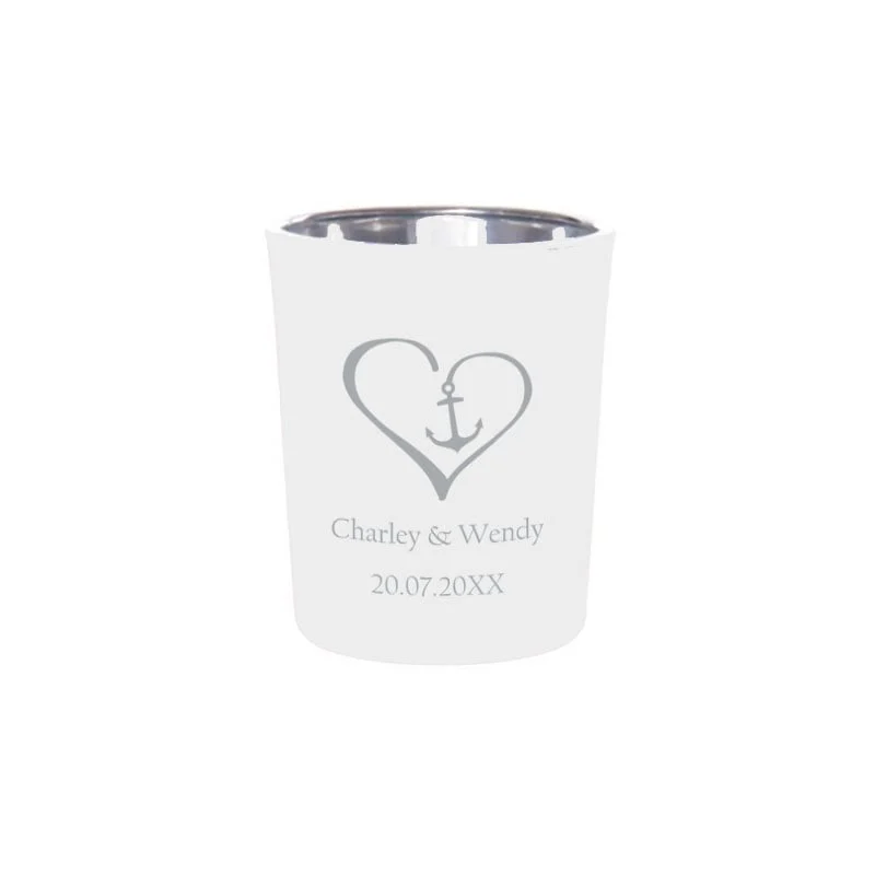 Een betoverend accent dat de liefde van een paar viert, gegoten in het fonkelende glas van onze “Hartverwarmende Anker Waxinelichthouder”. Elk detail is doordrenkt met zorg en genegenheid, van het prachtige hart met daarin een ingebed anker, tot de namen van het paar en hun speciale trouwdatum die eronder gegraveerd zijn.