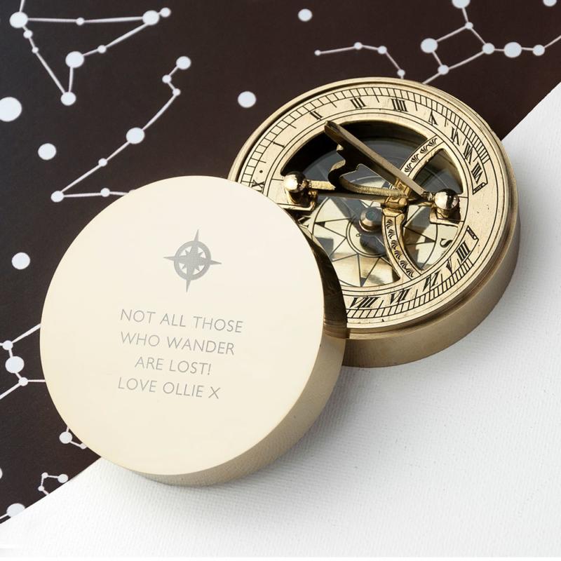 Sommige cadeaus vergeet je nooit — de Gepersonaliseerde Zonnewijzer Kompas is er één van. Massief messing, volledig operationeel nautisch kompas met unieke zonnewijzerfunctie, gegraveerd met jouw persoonlijke boodschap. Of het nu een quote is die hem inspireert, een herinnering aan thuis, of simpelweg zijn naam — dit kompas draagt jouw woorden voor altijd met zich mee.
