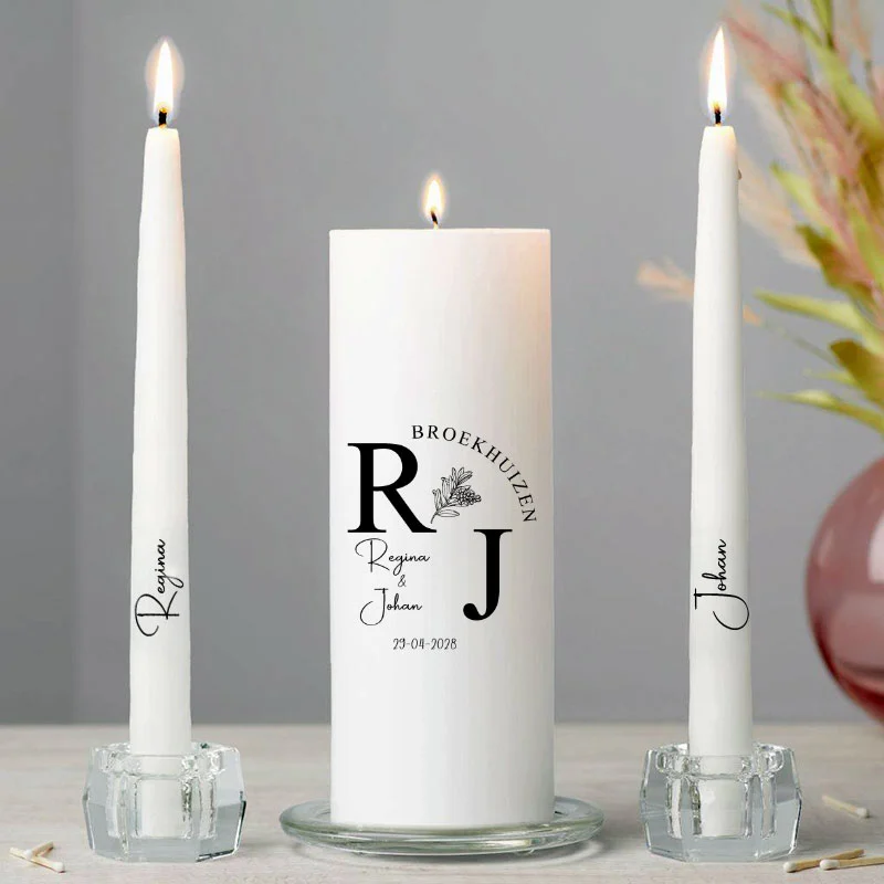 Voeg een vleugje tijdloze schoonheid toe aan jullie speciale dag met de Gepersonaliseerde Trouwkaarsen in Zwart en Wit. Deze klassieke unity candle set, vervaardigd uit hoogwaardige witte paraffine, symboliseert jullie samensmelting als paar. Zoeken jullie liever een botanische variatie? Bekijk dan onze populaire huwelijkskaars greenery bliss.