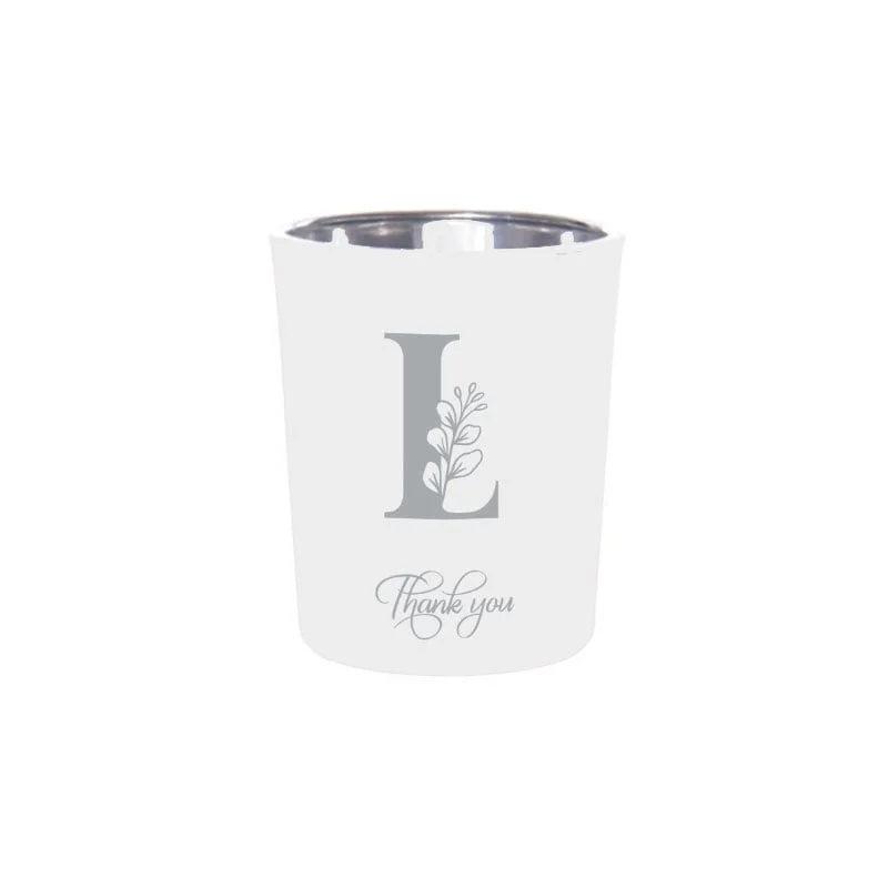 De Gepersonaliseerde Waxinelichtjes Thank You zijn een stijlvolle en hartelijke manier om dankbaarheid te tonen. Deze prachtige waxinelichtjes worden gegraveerd met een initiaal, subtiel versierd met een bloemaccent, gevolgd door de tekst ‘Thank You’. Perfect als bedankje voor elke gelegenheid, of het nu gaat om bruiloften, verjaardagen of zakelijke evenementen.