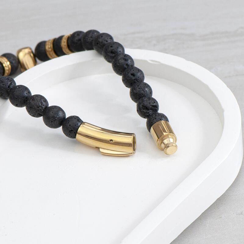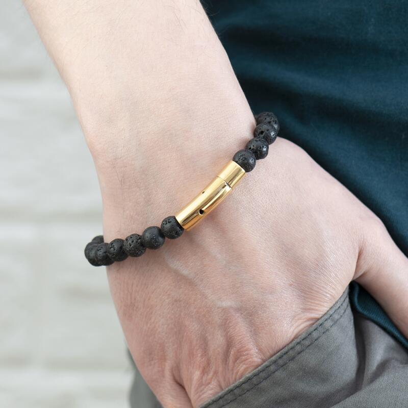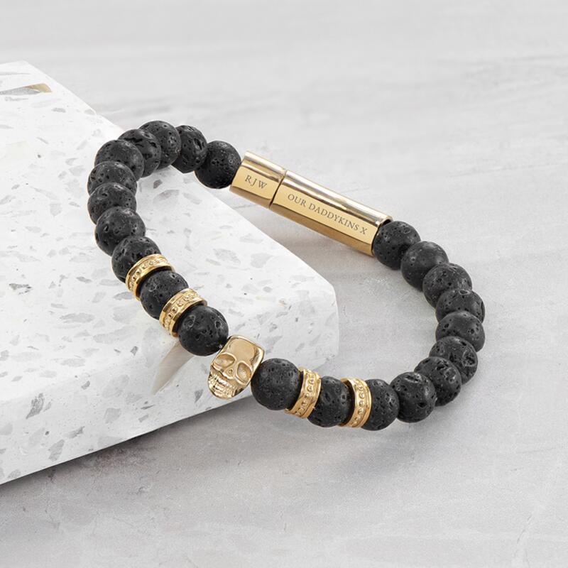 Voor het perfecte verjaardags- of jubileumcadeau voor die speciale man in je leven, zoek niet verder! Onze ‘Golden Skull: Gepersonaliseerde Mannen Armband’ straalt stijl en luxe uit, en zal hem zeker verrassen en plezieren. Vervaardigd uit zwarte lavasteen kralen, verweven met goud vergulde elementen, is deze armband een accessoire waar hij dol op zal zijn. Bovendien voegt de gouden schedelkop een laag van intrige en mysterie toe aan elke outfit, waardoor hij een onvergetelijke indruk maakt waar hij ook gaat.