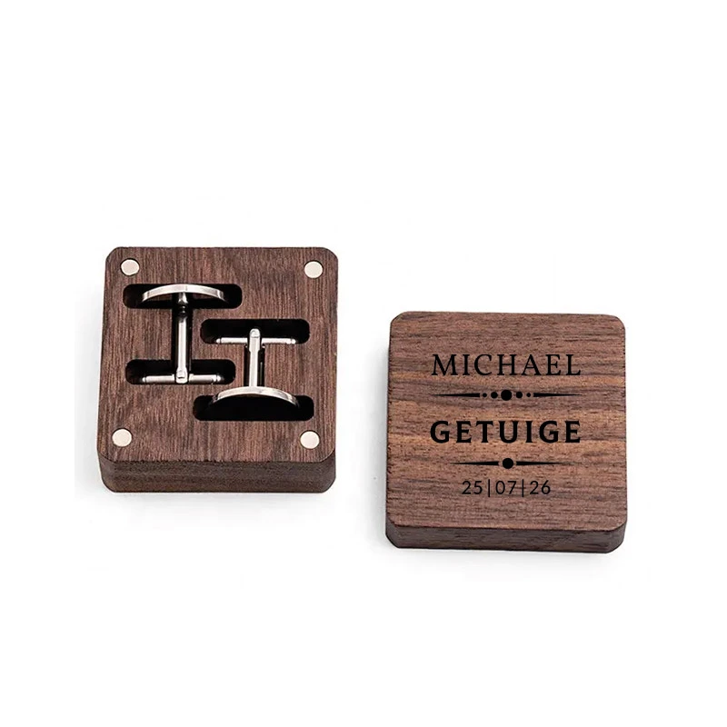 Set van 2 walnotenhouten manchetknopen gegraveerd met “Getuige”, naam en datum (bijv. “Jan – Getuige – 28.07.2025”). Voorbeelden: bedank getuigen, of vraag ze met deze twist. Inclusief luxe doos. Levertijd: 2-4 werkdagen – wooden wonder with warmth.