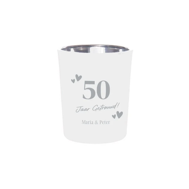 Deze prachtige theelichtjes zijn meer dan alleen een bedankje – ze zijn een viering van liefde, toewijding en jullie gedeelde reis. Elk theelichtje is gegraveerd met het jubileum van 50 jaar getrouwd zijn, waardoor het een uniek en betekenisvol aandenken wordt voor jullie speciale dag.