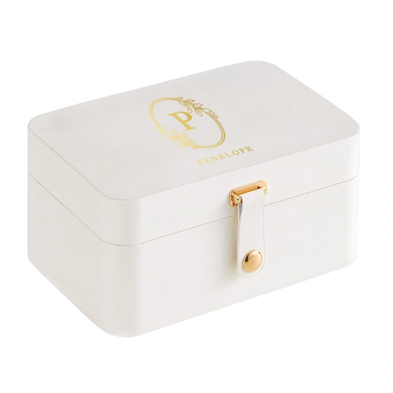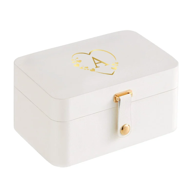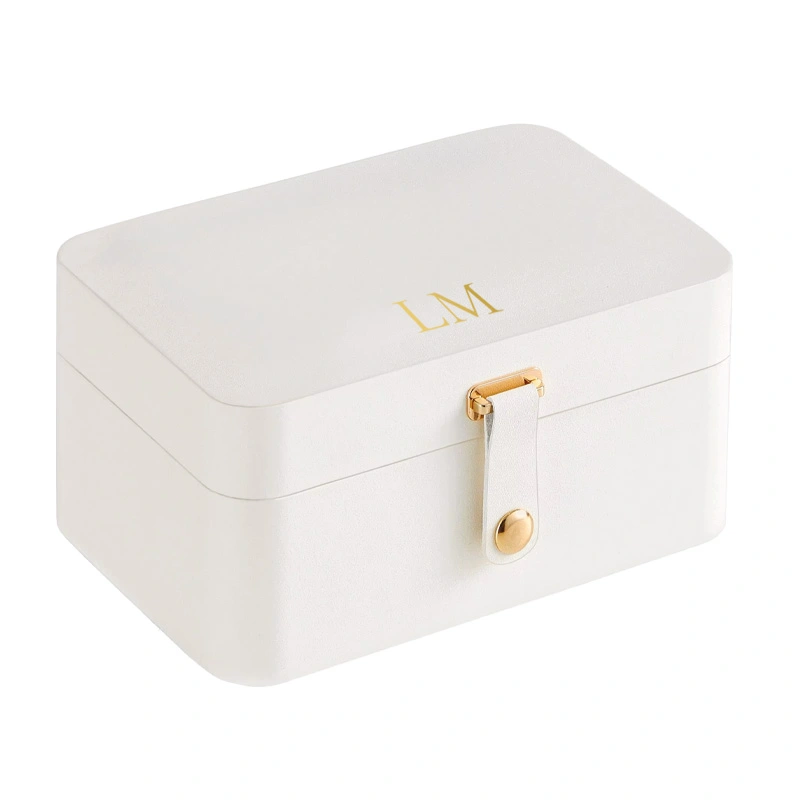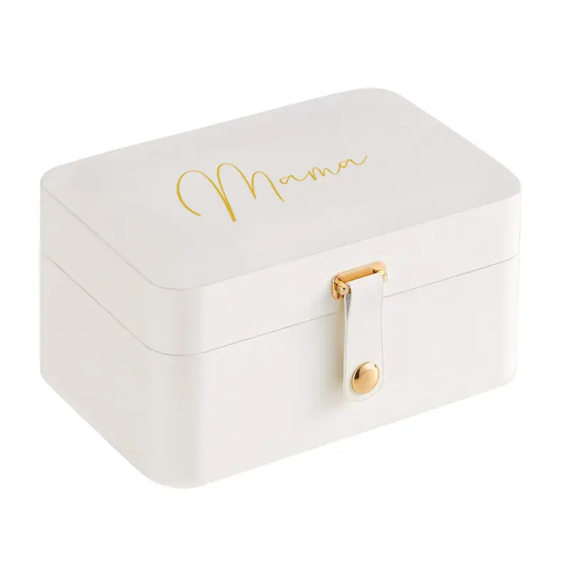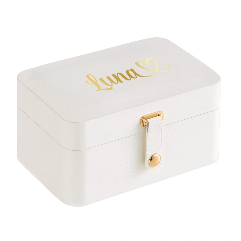 Stijlvolle opbergruimte met een gouden randje Geef je kaptafel een upgrade met deze witte sieradenbox, die functionaliteit combineert met een minimalistische Korean style esthetiek. Omdat wij geloven in kwaliteit boven kwantiteit, bieden wij dit doosje uitsluitend aan met een goudkleurige personalisatie. Goud biedt het mooiste contrast op het witte PU-leer en zorgt voor die tijdloze, luxe uitstraling waar je naar op zoek bent.