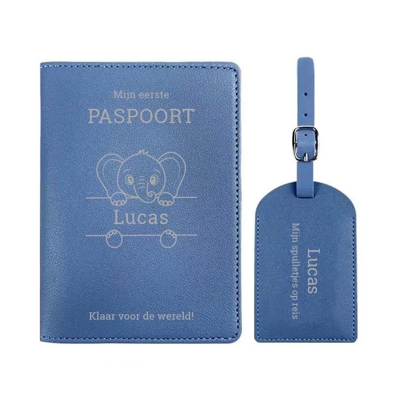 - Gravure: Naam, olifantje, en de tekst “Mijn Eerste Paspoort” en “Klaar voor de wereld!”
