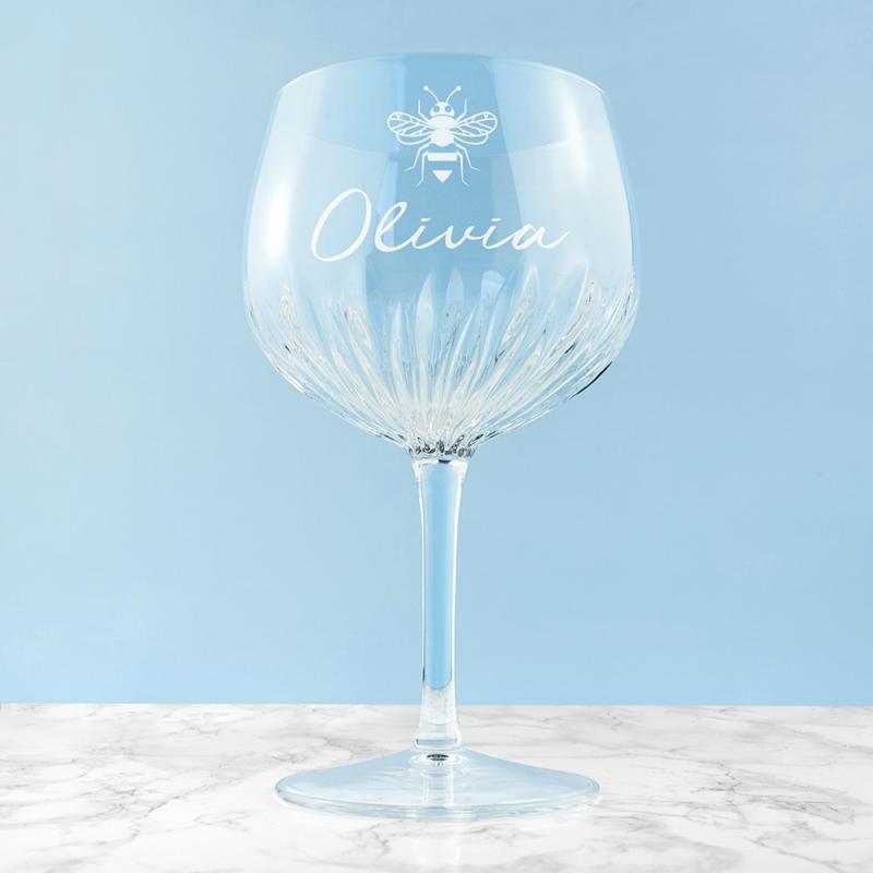 En hier komt het beste deel: je kunt het glas personaliseren met iconen zoals harten, honingbijen of een botanisch thema, samen met jouw naam. Zo blijft jouw gin-tonic altijd veilig en alleen van jou – want wie wil er nou andermans drankje drinken, toch?