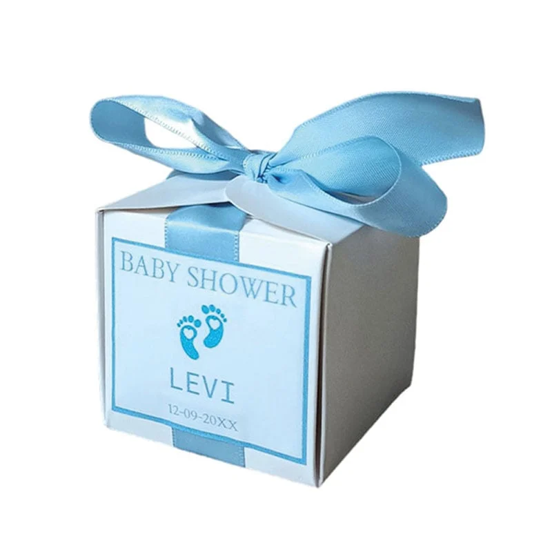 Personaliseer de doosjes met een naam, datum, baby shower thema en de schattige babyvoetjes om jouw bedankjes extra speciaal te maken. Wij bedrukken de bijgeleverde stickers met hoogwaardige kwaliteit, zodat jouw persoonlijke boodschap echt opvalt.